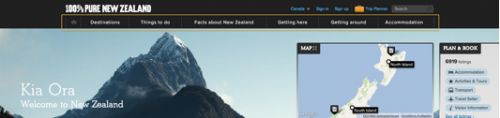 图中,新西兰的网站导航条做得非常清晰,每一条重要链接都很醒目,二级链接也非常有条理。