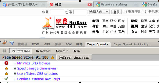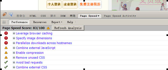 对于网页加载速度的分析,Google提供了page-speed工具,可以提供详细的网页加载速度的优化报告,下面将以这个工具的对齐鲁人才网的分析报告为依据,说明网页速度优化的内容。