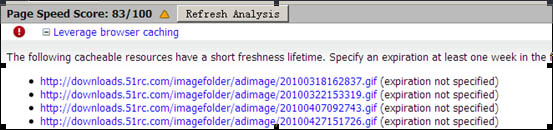 说明:列表中的内容(如图片)没有定义缓存过期时间,只有设置了缓存过期时间,等文件过期后才会重新进行缓存,所以该项内容需要进行优化,对图片的缓存过期时间进行设置。