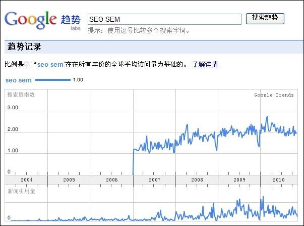 2)、Google趋势。Google趋势与百度指数很类似,同样是显示关键词的被关注度,实际上也就是搜索量。查询时可以输入多个关键词,词之间以逗号分隔。Goole趋势将图表中同时显示这几个关键词的搜索量趋势变化,利于比较。Google趋势链接:http://www.google.cn/trends