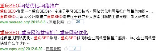 下面我们用“重庆seo”这个关键词来进行一个举例分析,相信很快能得结论的。
