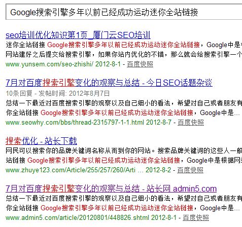 以上的内容是想告诉站长朋友们,并不是你每天都保持大量更新就能获得好的排名的,文章的质才是最重要的。