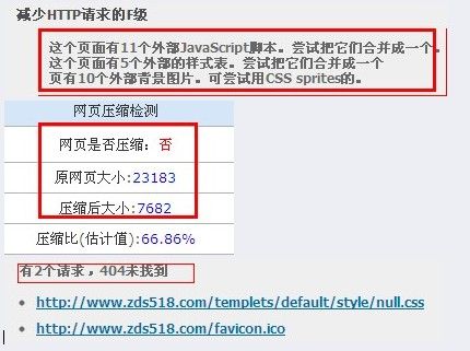 在这张图中,有以下三点是这个网站需要注意的,第一点是,资源的整体调用,毕竟这样可以减少dns调用,对于速度方面将是一个很好的提升;而在第二点中,那就是GZIP压缩,刚刚看了这个网站的空间,是万网的空间,想着如果是虚拟主机的话,那肯定是有流量方面的限制,通过GZIP也可以减少70%的页面传输,不得不说对于流量这一块来说也是一种很好的推广方法,而且往往对于GZIP压缩是支持的,有时候仅仅手动调整一下就可以更加方便许多。
