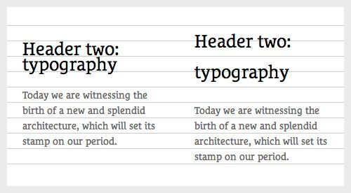 此外,通过基本一个每个垂直(和水平)间距都一致,每一个元素有着预设单元尺寸的系统不仅消除了上述随意的不统一性,也使得设计师的工作更加容易,设计师只需在总框架总决定基本的结构。建立一个标准,比如,头部下面总有两个基线的白色间距,每个盒子都有三个基线空间的内边距,在我们的布局中增加逻辑,这不仅易于设计,易于实现,更重要的是易于理解。