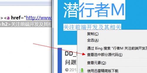 这是火狐浏览器中内置的一个功能,通过选取网页上的一快内容,然后右击查看选中部分源代码,可以快速查看到你选中部分的源代码内容。这样就可以非常快速的了解到某个区域的 HTML 结构,从而避免从海量文件中寻找对应代码。